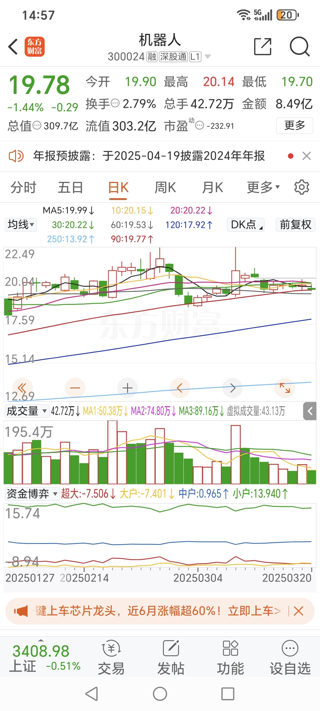 $机器人(SZ300024)$ 从技术面↑看 股价被逼到墙角了 到底向上 向下这两天必须做方向了