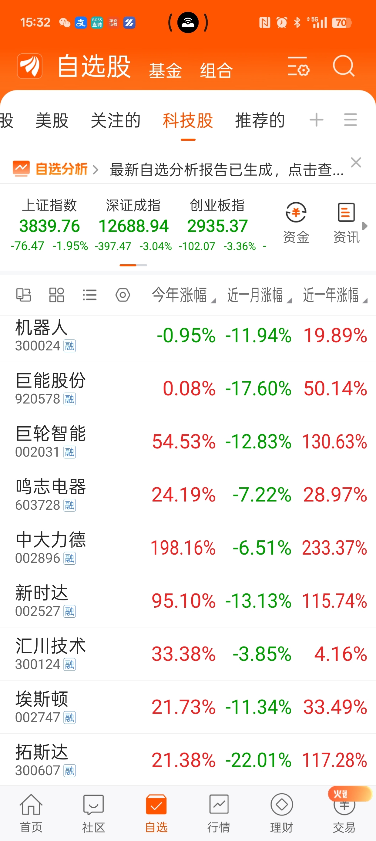 看了一下自选的机器人板块股,还真是垫底货!唉……太失望,太郁闷,今年这波牛市行情