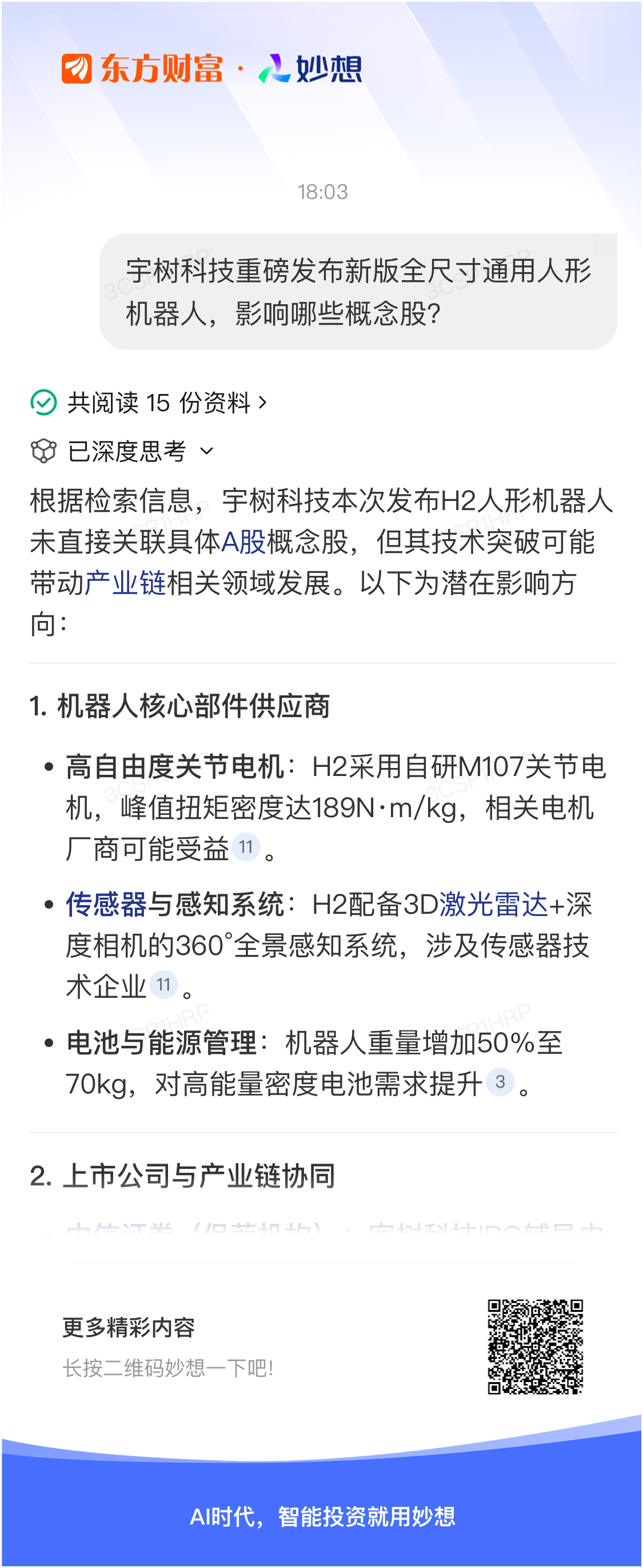 #@妙想,你怎么看?# 妙想一下:宇树科技重磅发布新版全尺寸通用人形机器人,影响哪些概念股?