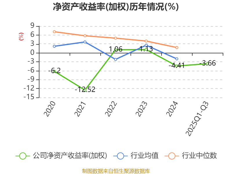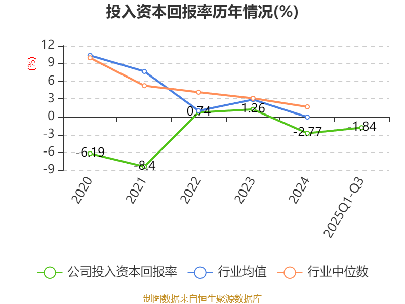 盈利能力方面, 2025年前三季度公司加权平均净资产收益率为-3.66%,同比下降1.37个百分点。公司2025年前三季度投入资本回报率为-1.84%,较上年同期下降0.52个百分点。