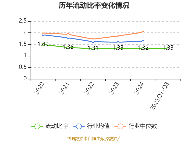 2025年前三季度,公司流动比率为1.33,速动比率为0.7。
