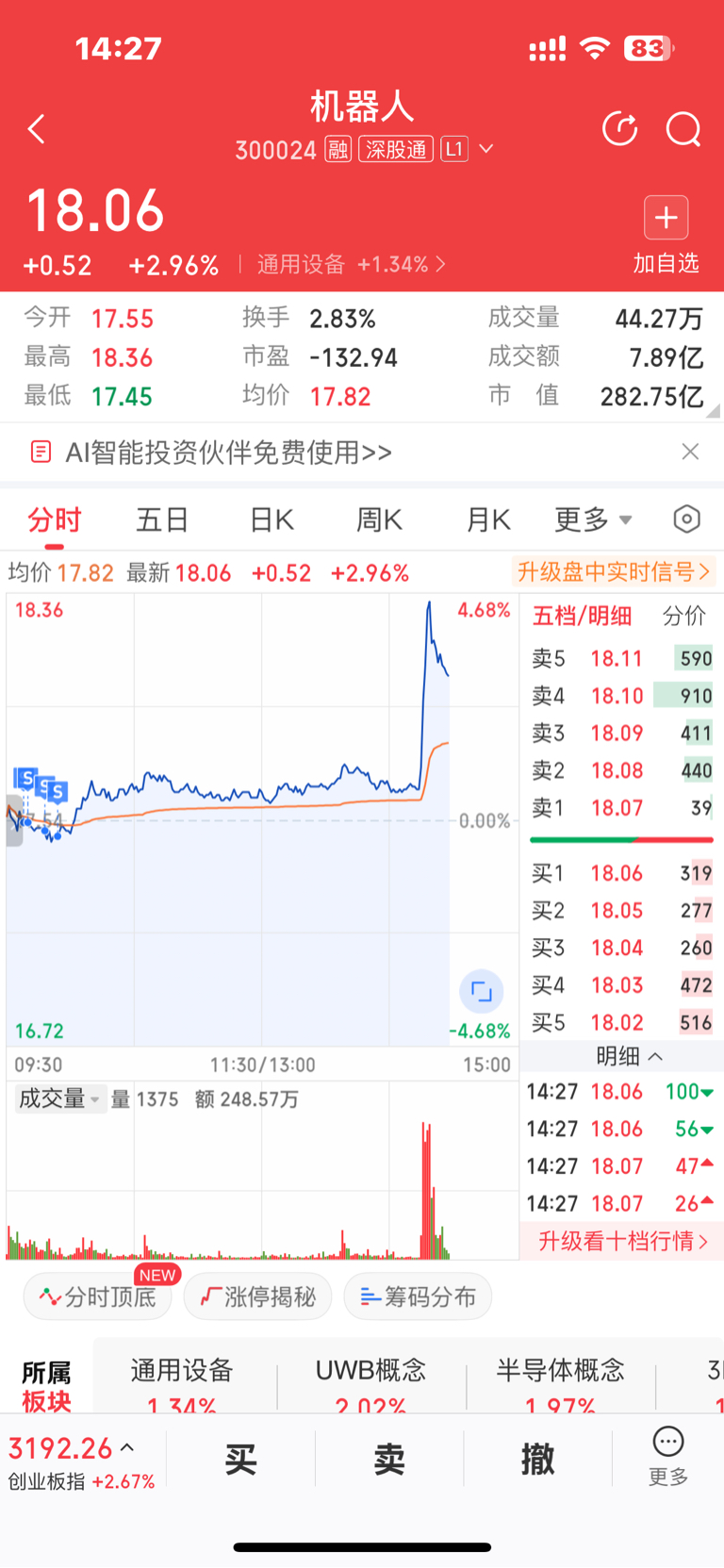 $机器人(SZ300024)$ 卖飞了卖飞了