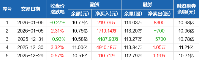 机器人:融资净买入219.79万元,融资余额10.77亿元(01-06)