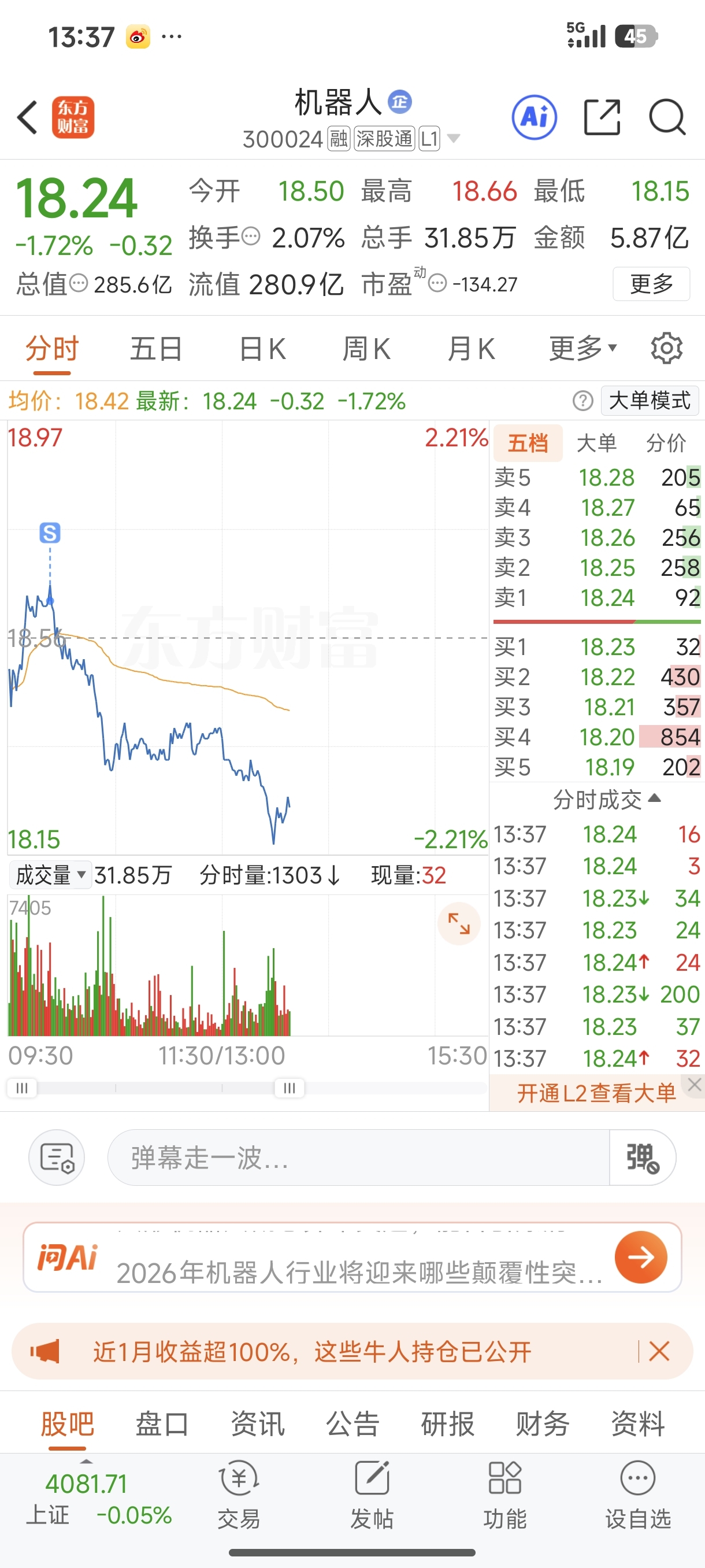 $机器人(SZ300024)$ 还好今天跑得快