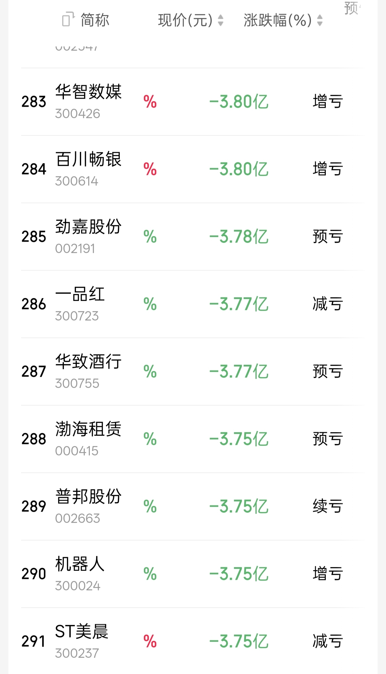 今天一千来家预亏亏损幅度有800家公司幅度比他多亏损金额290家亏得比他多周大概