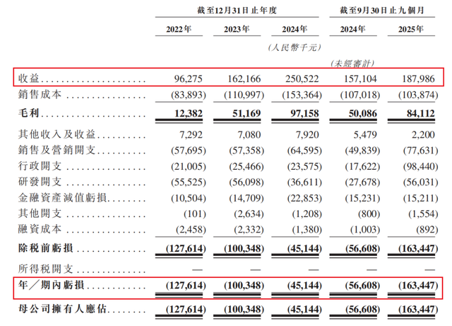 在工业智能机器人赛道高歌猛进的今天,斯坦德机器人向港交所递交的《招股说明书》展现了公司报告期内的亮点和困顿。在2022年至2024年间创造了营收年复合增长率61.3%的亮眼业绩,毛利率更是从12.9%一路攀升至2025年前三季度的44.7%。然而在这高速增长的背后,却是公司报告期内累计亏损4.36亿元的残酷现实。