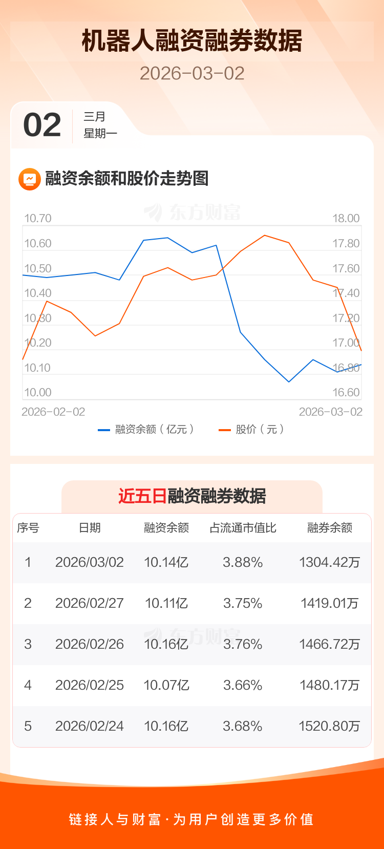 交易所最新数据显示,机器人于2026年3月2日获融资买入3612.72万元,融资偿还3309.74万元,当日融资净买入302.98万元。目前,该股融资余额10.14亿,占流通市值比例为3.88%。