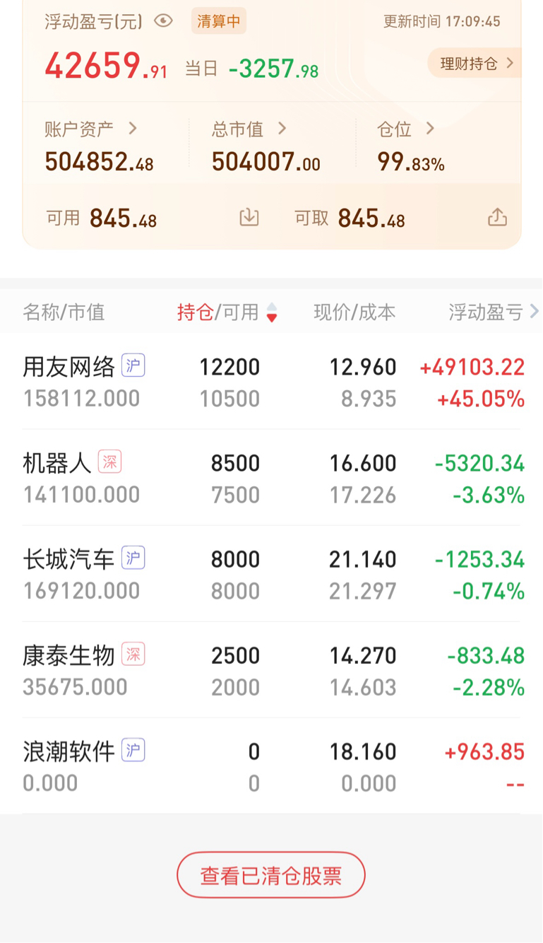 $机器人(SZ300024)$ $用友网络(SH600588)$ 今天补了用友、机器人、康泰生物,总觉得跌的到位了,什么时候启动就看主力的心情了~仓位比较平均,心态还可以~主打一个稳