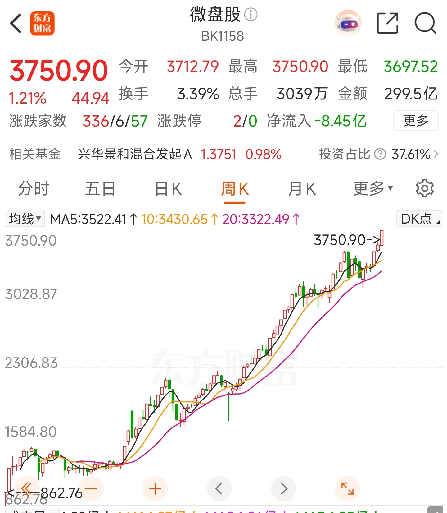大智慧的微盘股指数一年时间从2000多点涨到9000多点,涨了4倍。东财的从80