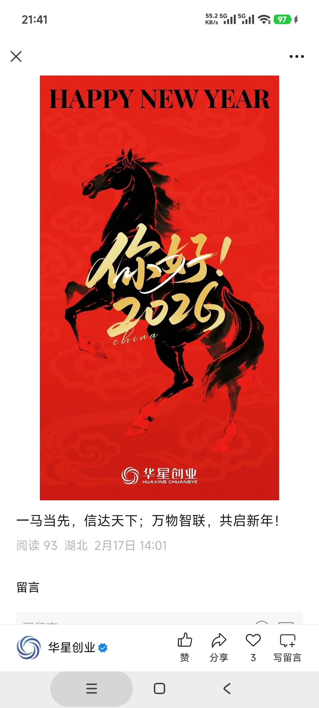 华星创业马年大吉!一路飞驰创伟业,股票腾飞红万里!
