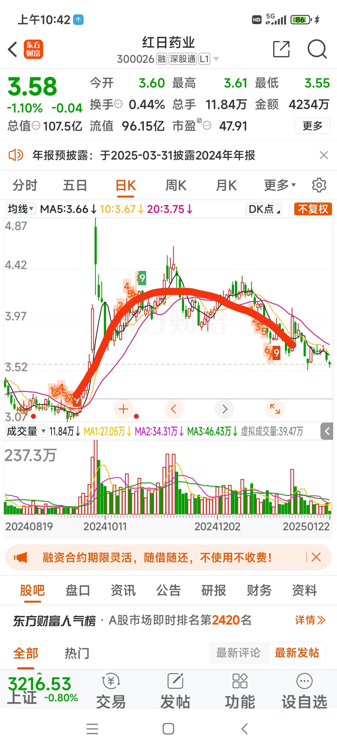 $红日药业(SZ300026)$ 圆弧顶/乌云盖顶