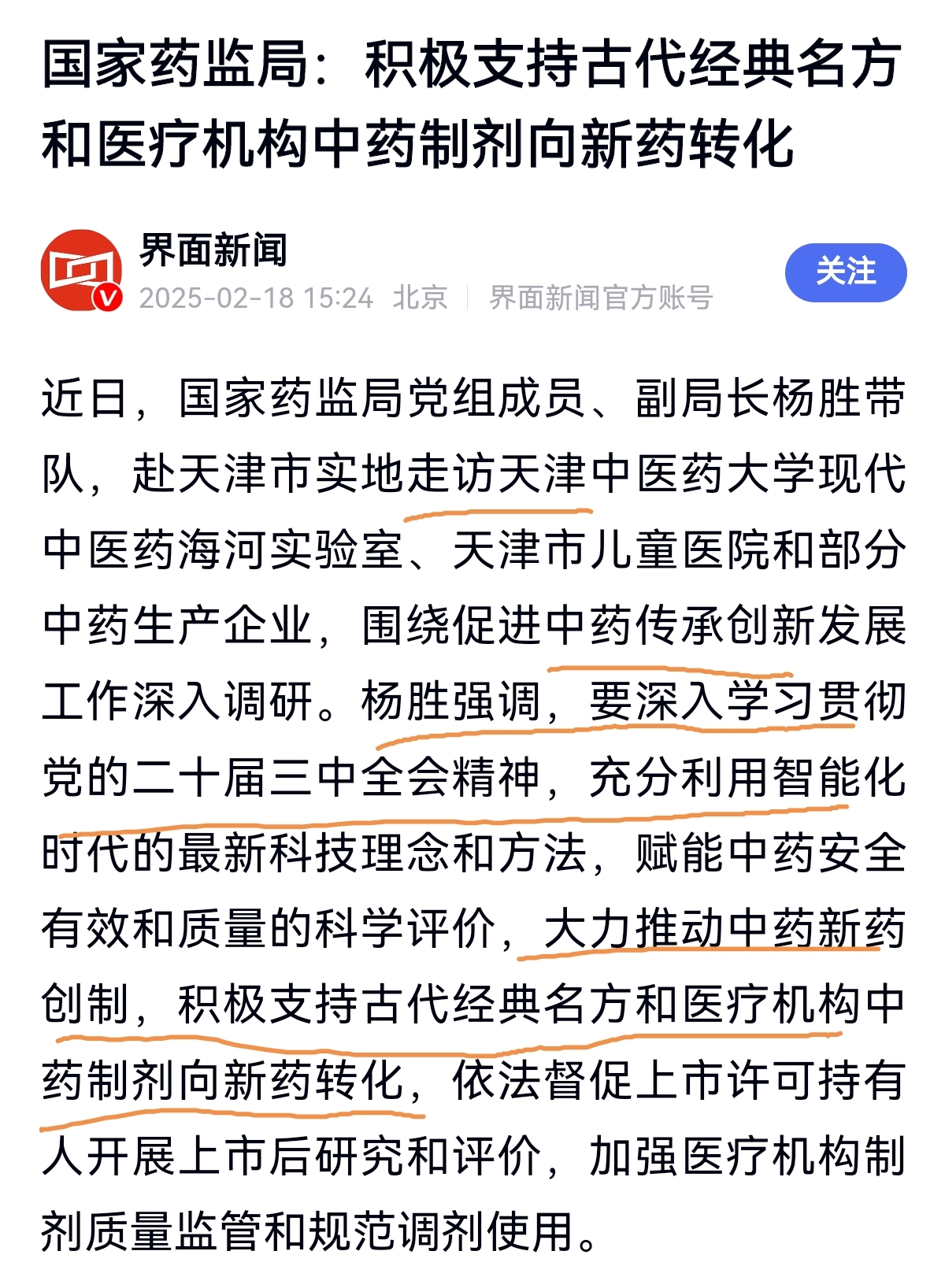 $红日药业(SZ300026)$ 国家药监局+天津+中药(传承创新)+(二十届三中全会+智能化)