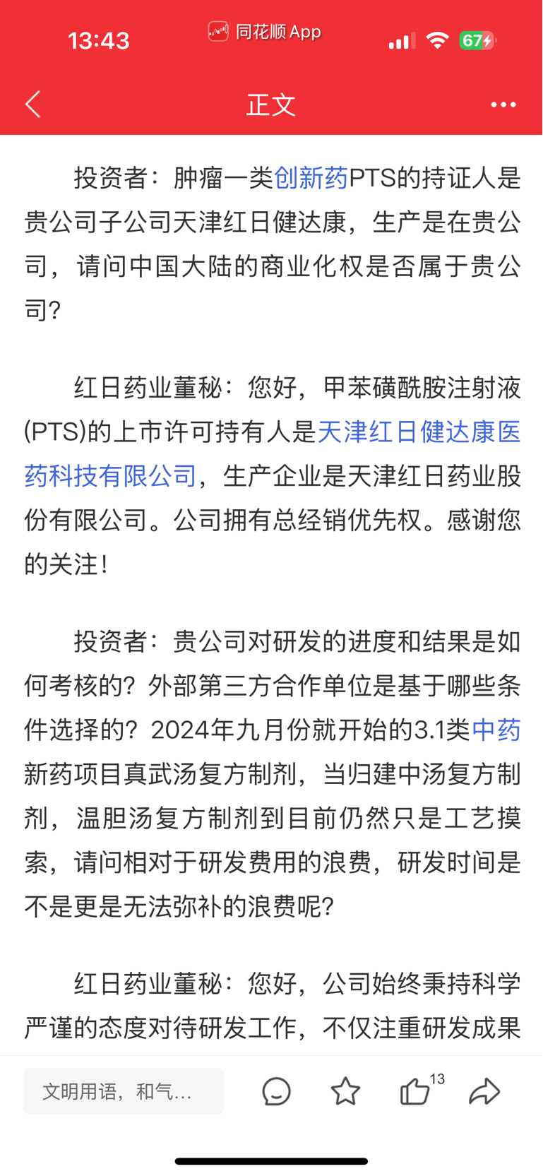 $红日药业(SZ300026)$ 这个值不值几个涨停?