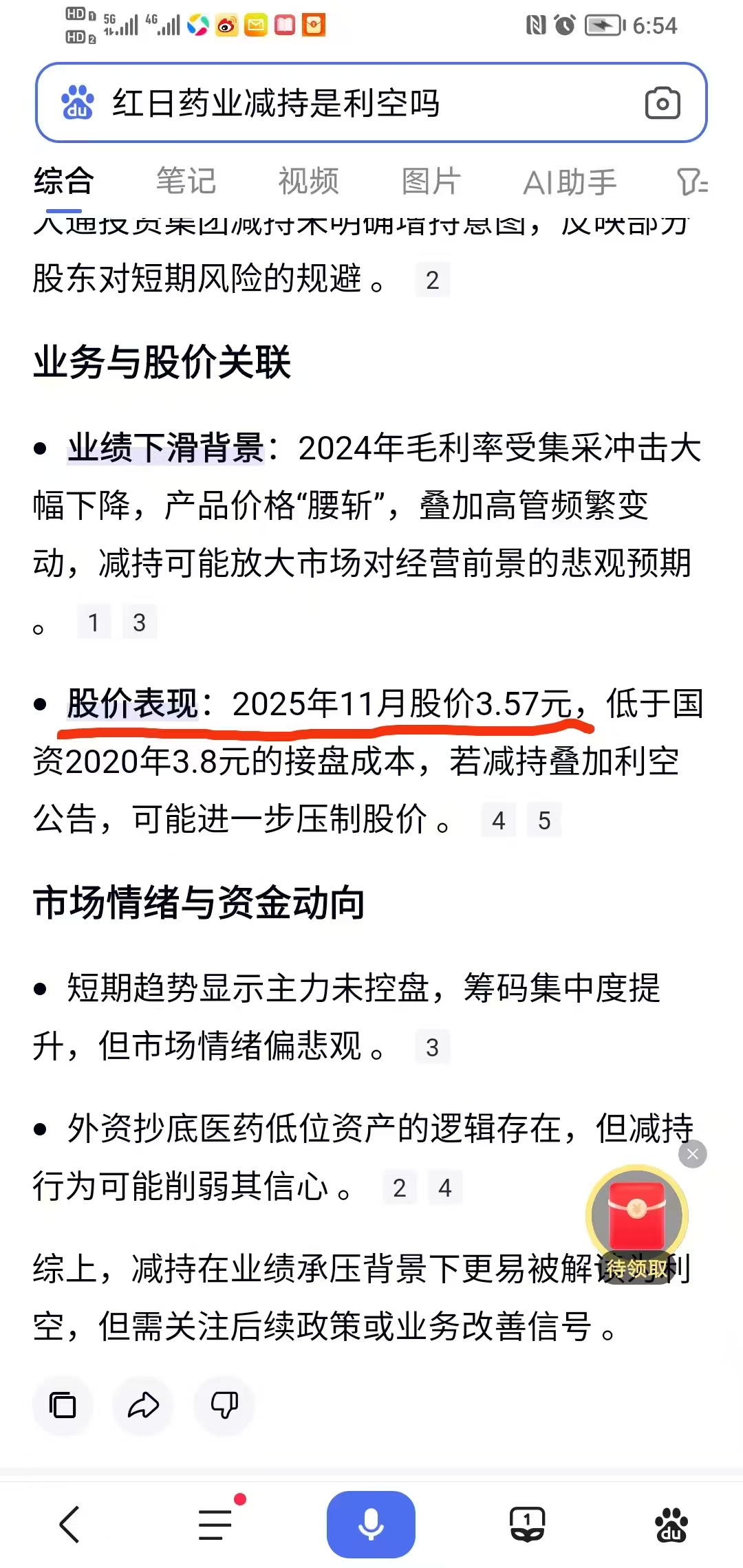 你可以上网查下, 2025年11月 红日药业 股价多少? 就是3.57元。 这是电脑查出来的。有图为证!!!