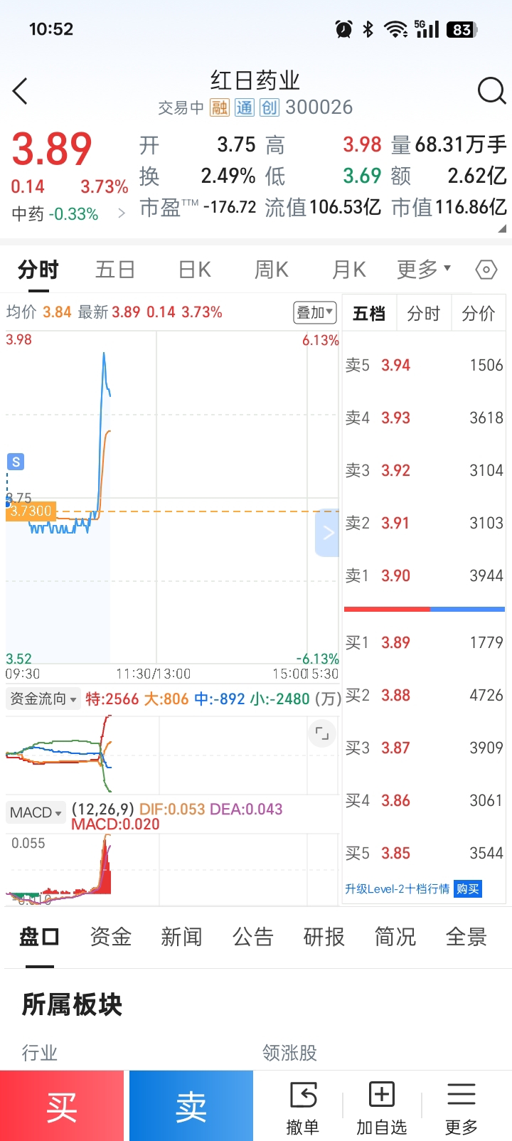 $红日药业(SZ300026)$