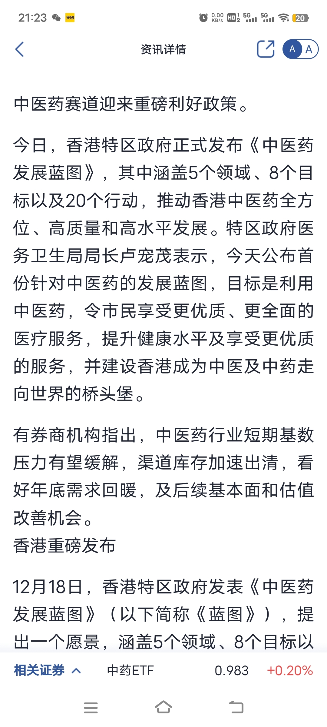 $红日药业(SZ300026)$ 明天二话别说,直接开盘涨停。因为今天收盘传来重大利好,香港那边对中药制定出系列利好政策,难怪这几天医药和医药商业股频繁异动,有图有真相,请看附图