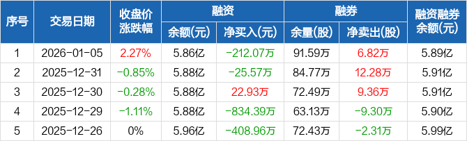 红日药业:融资净偿还212.07万元,融资余额5.86亿元(01-05)