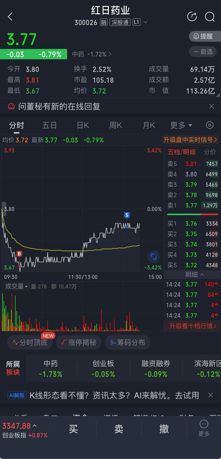 $红日药业(SZ300026)$ 踢你!明天低开继续踢你!
