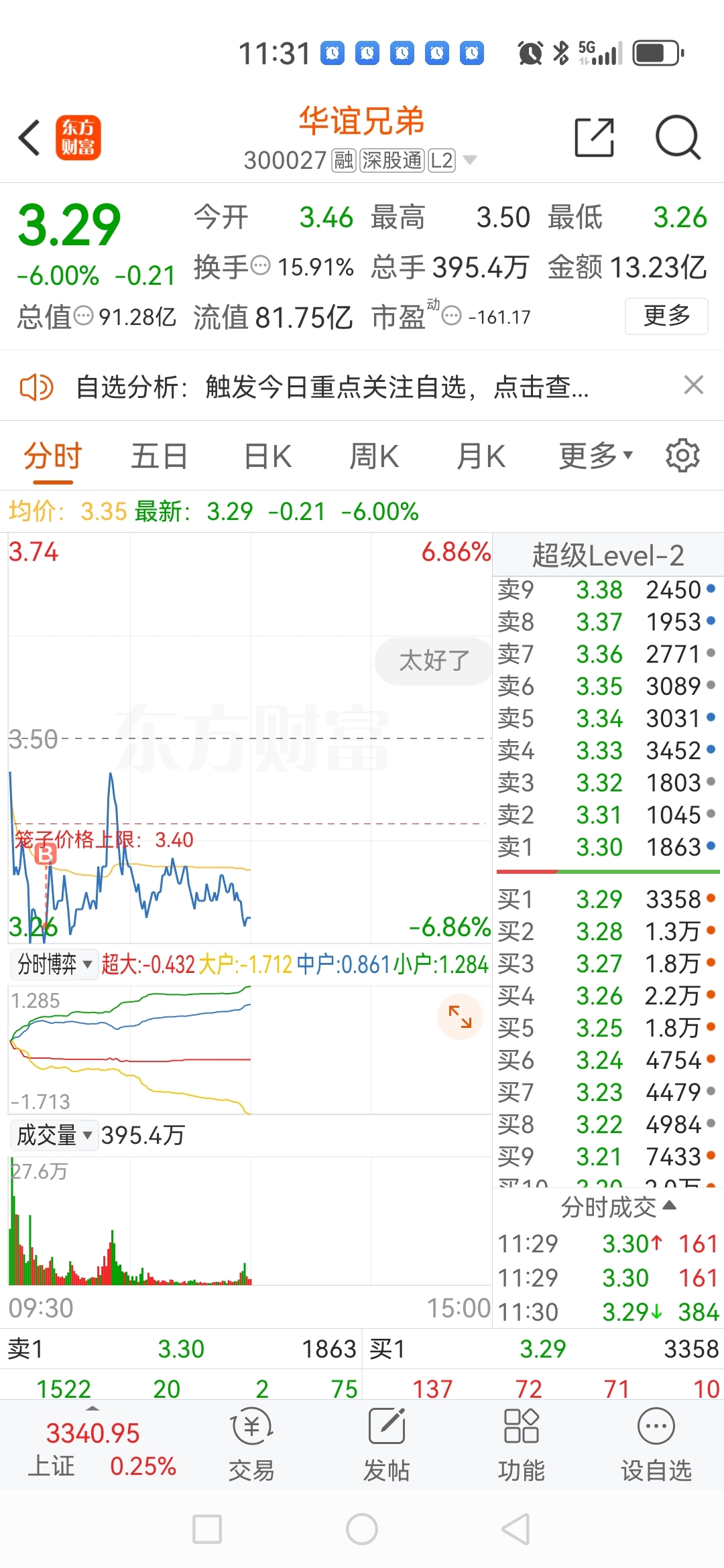 $华谊兄弟(SZ300027)$ 兄弟们对不起因为我买了就不会拉起来