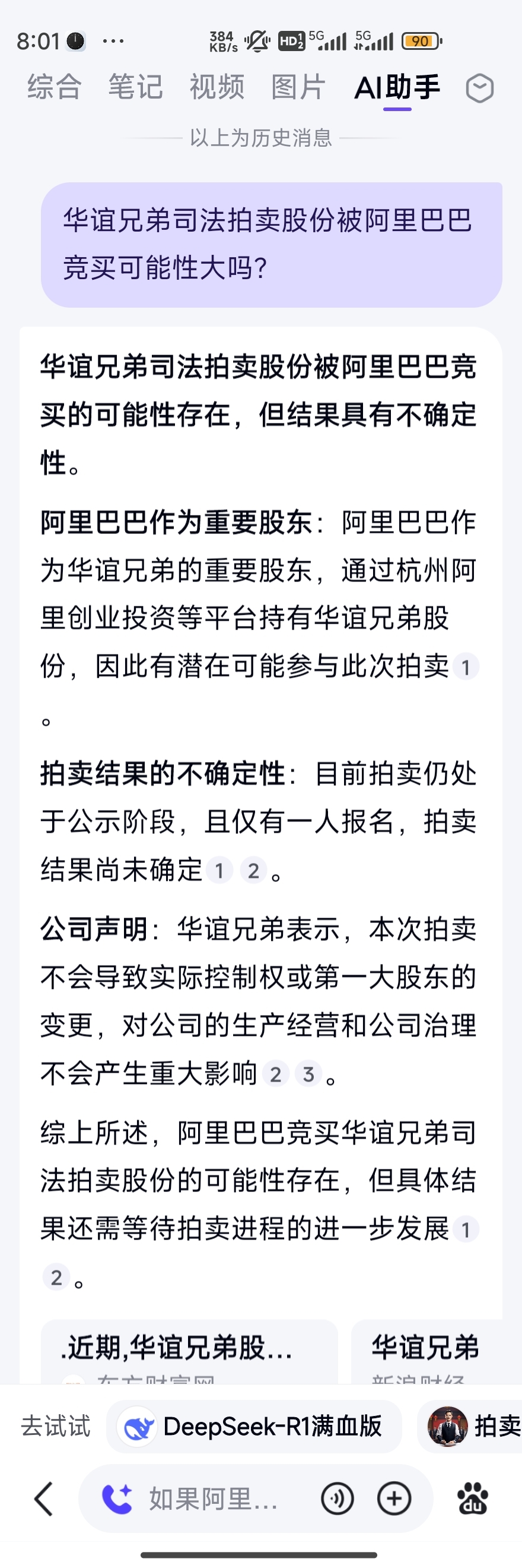 $华谊兄弟(SZ300027)$ 据百度AI,阿里巴巴可能竞买华谊兄弟拍卖的股份。
