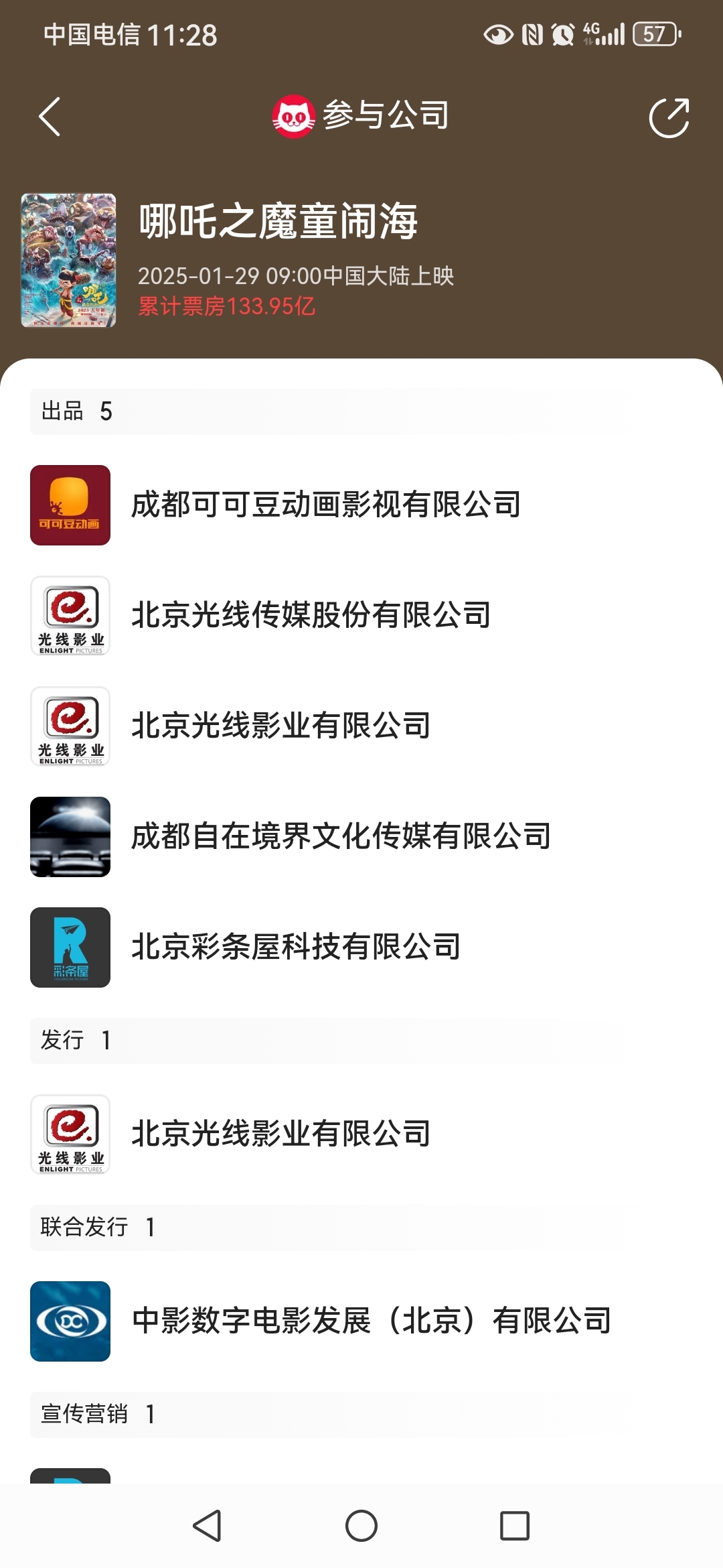 谈谈饺子与华谊兄弟,先看看哪吒之魔童闹海的出品方,里面有华谊兄弟吗?出品方最占最大的比重是谁呢?就知道饺子与哪个影视公司关系比较好,与哪个影视公司签约的可能性比较高?