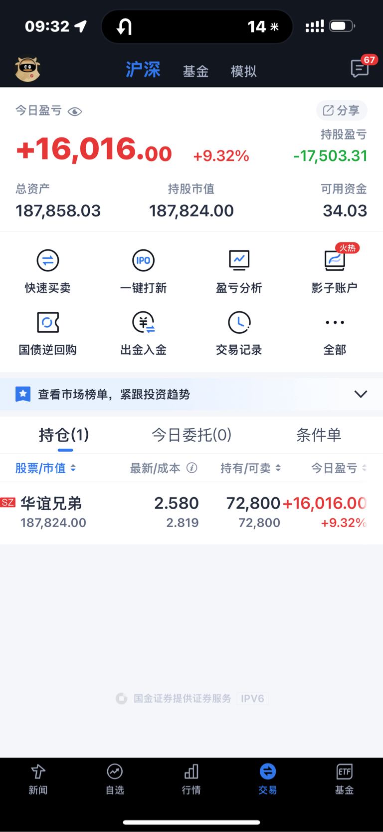 $华谊兄弟(SZ300027)$ 早盘格局一下没卖结果亏了8个多点,继续持有吧