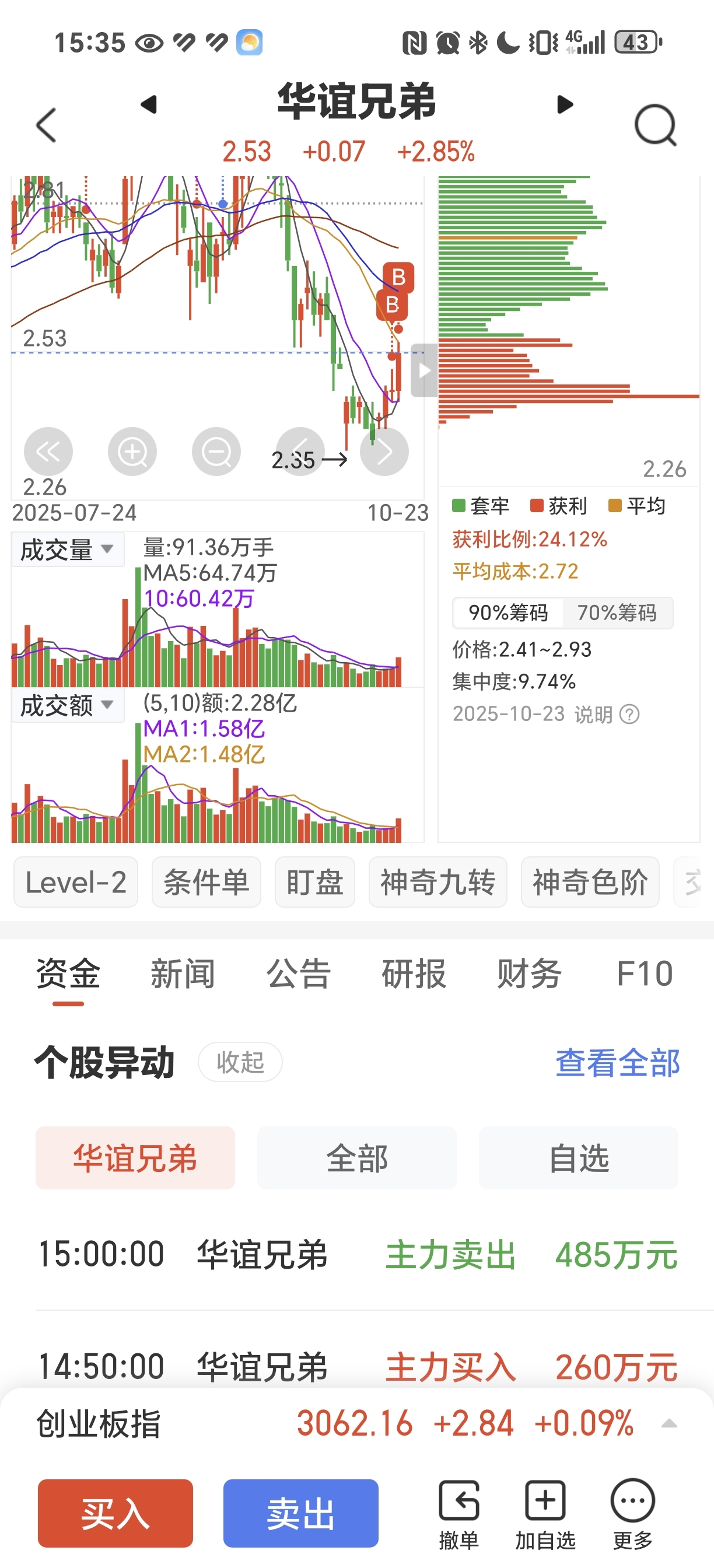 看这两天的量能华谊这一波行情看来有启动了,昨天2.46买入10万股,今天2.48