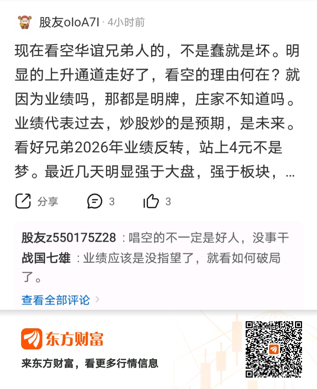 温馨提示: 1.根据《证券法》规定,禁止编造、传播虚假信息或者误导性信息,扰乱证券市场;2.用户在本社区发表的所有资料、言论等仅代表个人观点,与本网站立场无关,不对您构成任何投资建议。用户应基于自己的独立判断,自行决定证券投资并承担相应风险。《东方财富社区管理规定》
