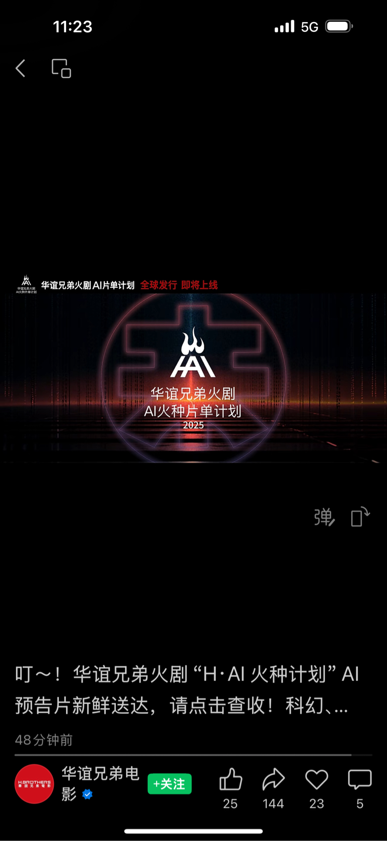 $华谊兄弟(SZ300027)$ AI剧上线,能不能涨停