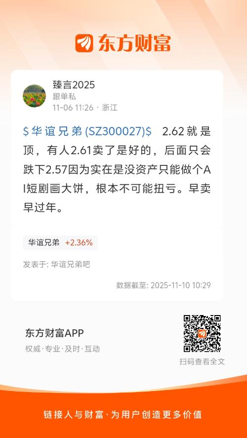 $华谊兄弟(SZ300027)$ 2.62就是顶,有人2.61卖了是好的,后面只会跌下2.57因为实在是没资产只能做个AI短剧画大饼,根本不可能扭亏。早卖早过年。