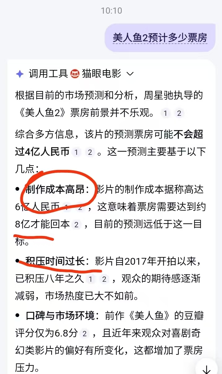 美人鱼2,6亿的成本,即便过年上影,也难回本,过年上影电影也非常多,爆款不会是是它,一旦王炸炸出,达不到预计,那真彻底凉凉了