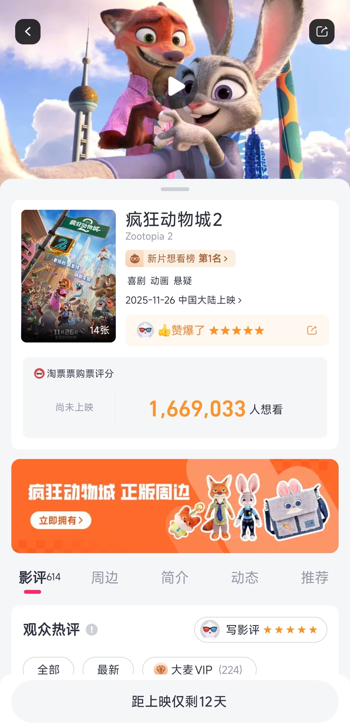 逻辑:11月爆款电影《疯狂动物城2》上映