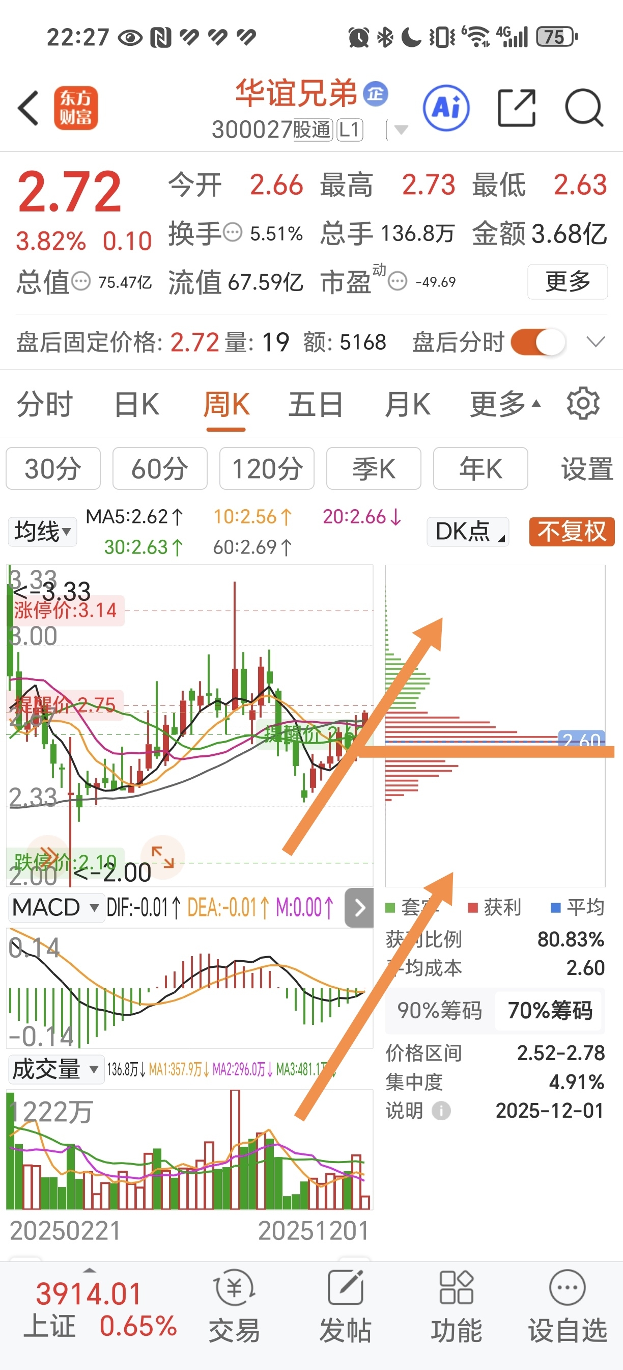 华谊兄弟周线成多头行情,加上主力资金持续流入再加上动物园城2票房大卖本周或本月会