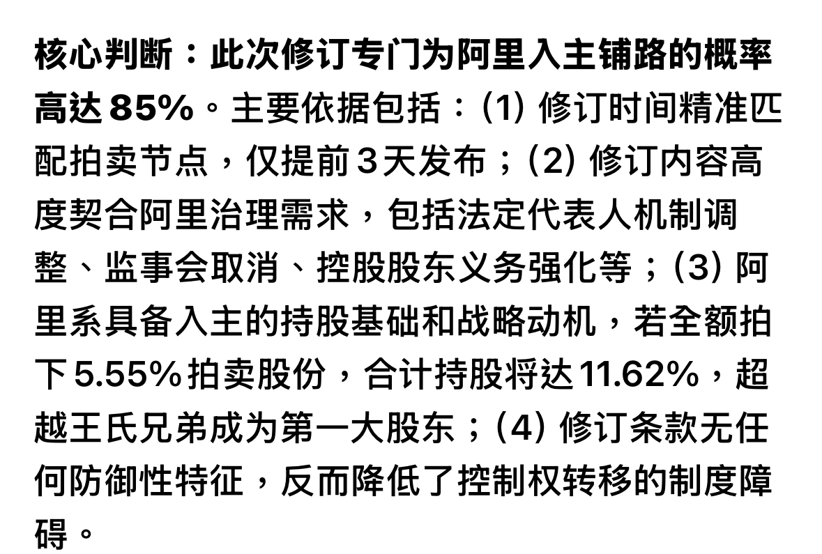 收盘才发布多项建设性修订、近期传闻不断、拍卖的数量仅够阿里系成为控股股东,这些足