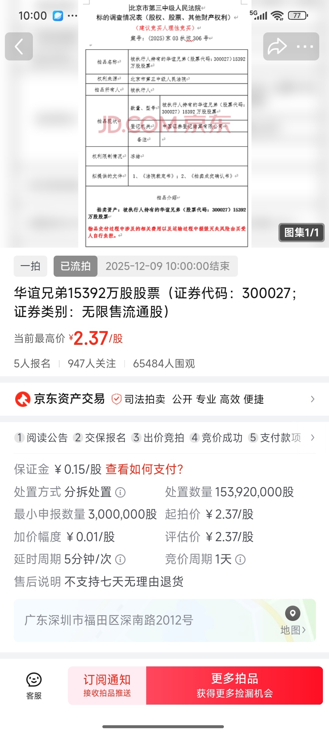 $华谊兄弟(SZ300027)$ 哈哈,你们要的流拍来了,没有奇迹