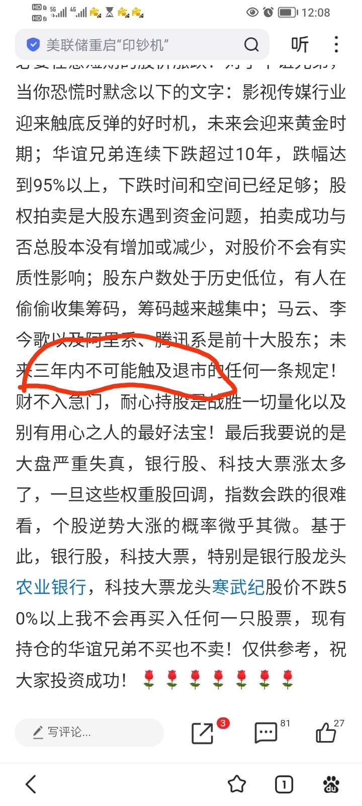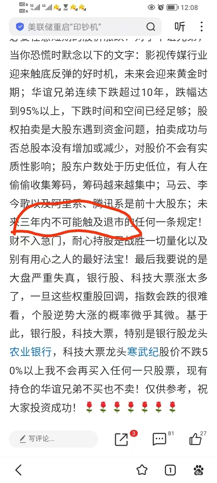 苟斗说了未来3年不会退市我截图了,等3年内退市了我好起诉他你们截图保存