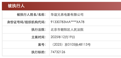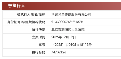 华谊兄弟新增被执行人信息 执行标的7473万余元