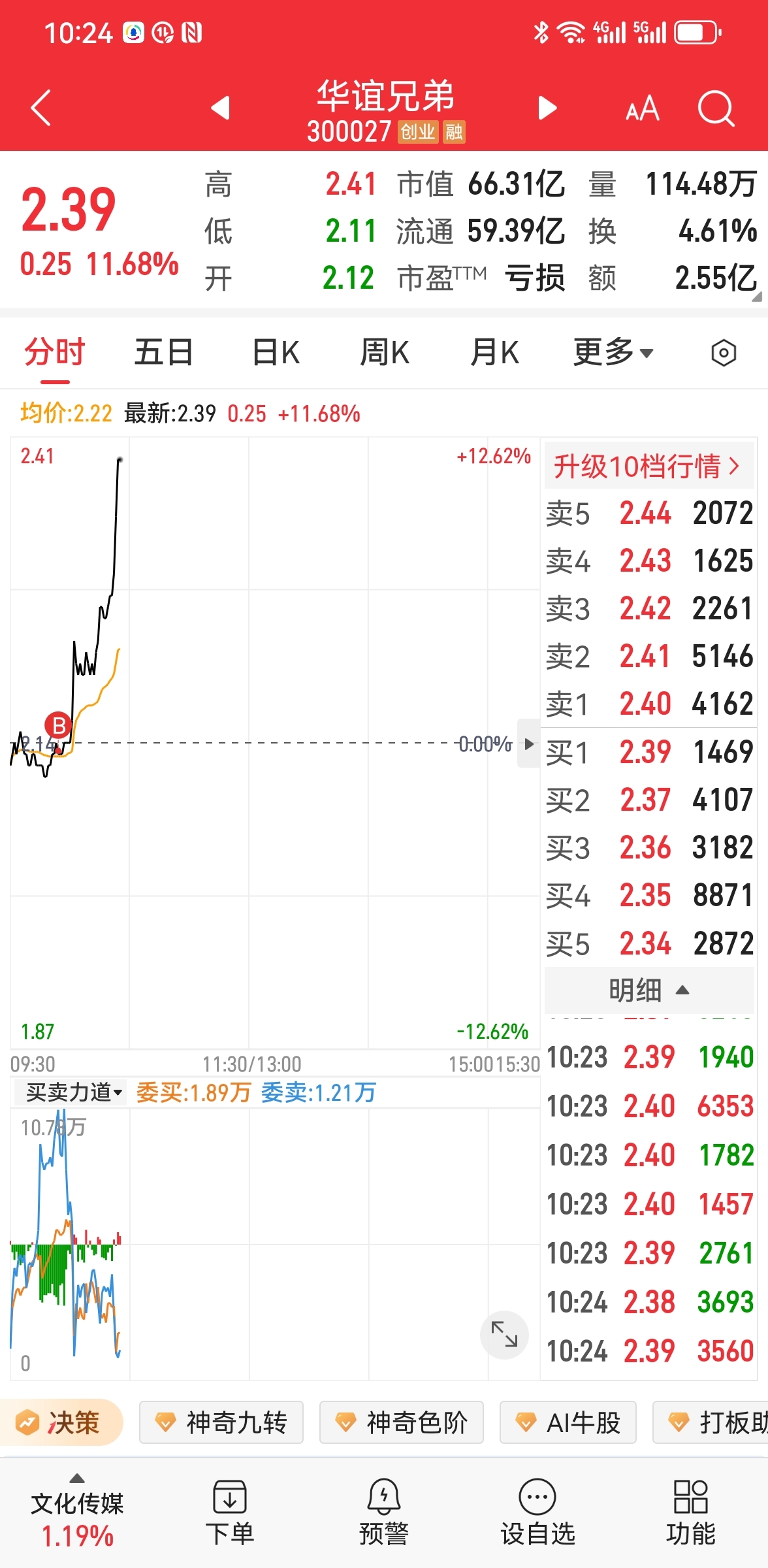 $华谊兄弟(SZ300027)$ 昨天进的 今天让出来吗?
