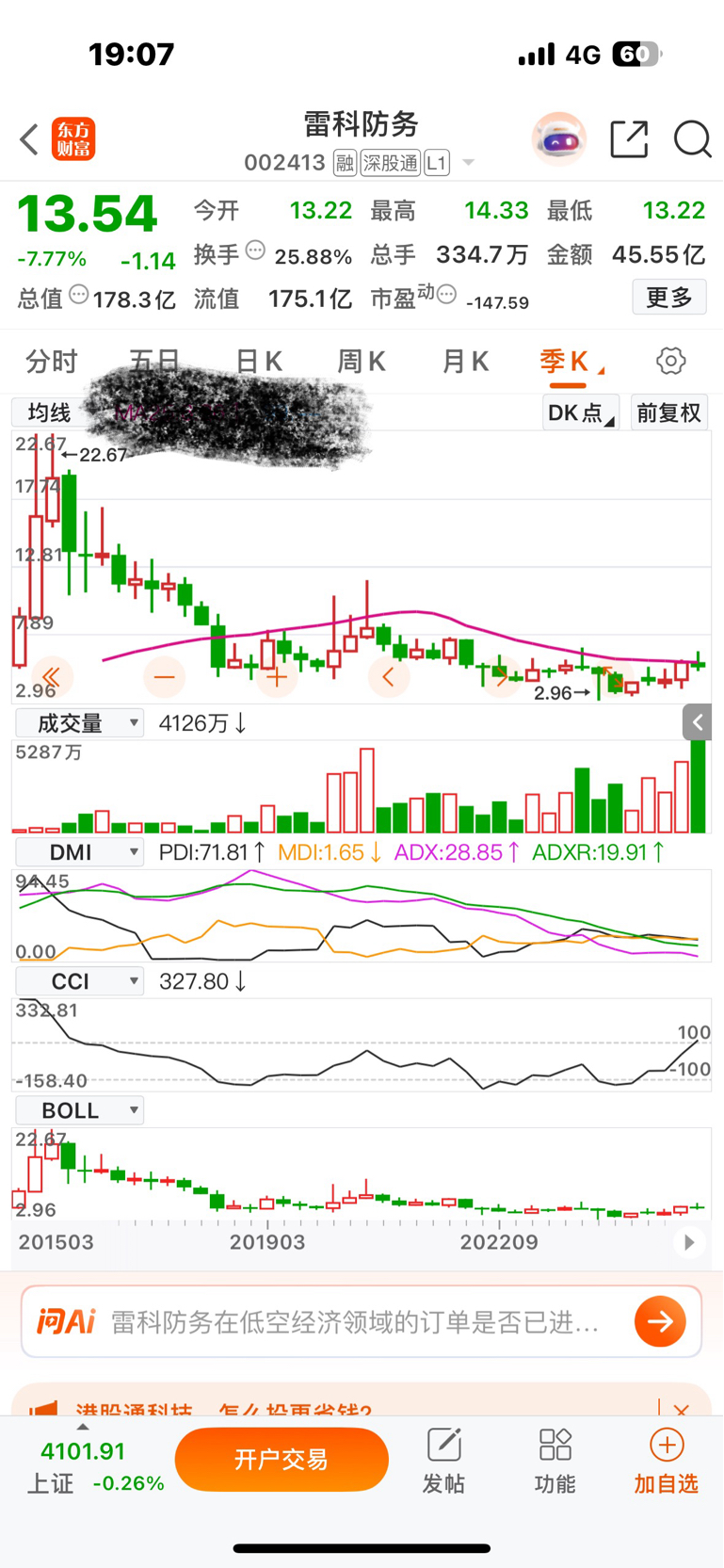 $华谊兄弟(SZ300027)$ 看看雷科防务季线与华谊类似,业绩近几年也是亏损连连,一旦走强就是几倍。