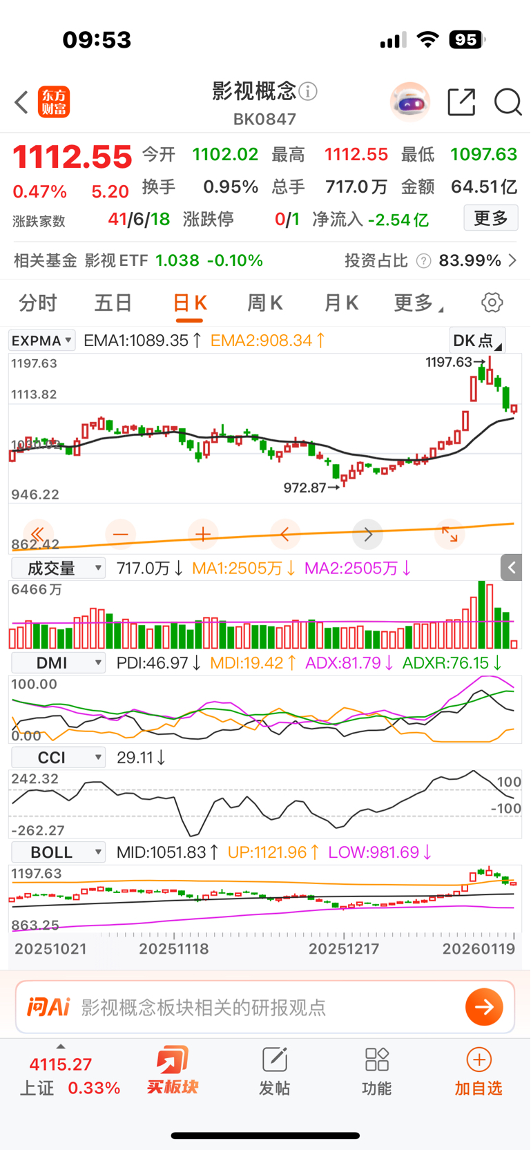 $华谊兄弟(SZ300027)$ 影视板块调整基本到位