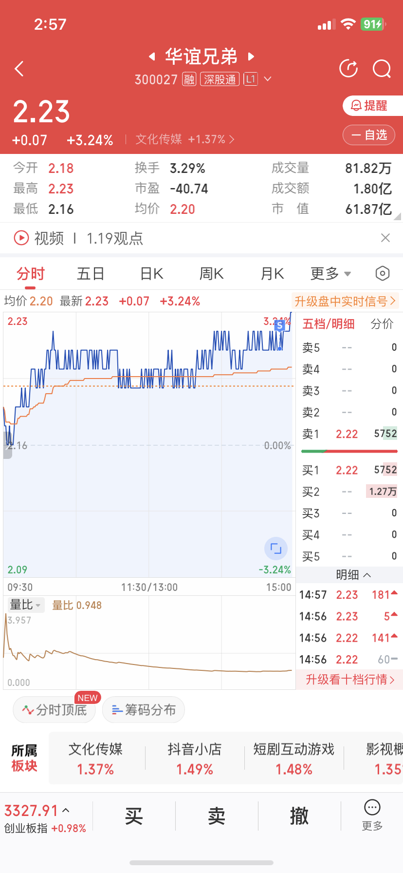 $华谊兄弟(SZ300027)$ 劳资一卖疯狂拉升