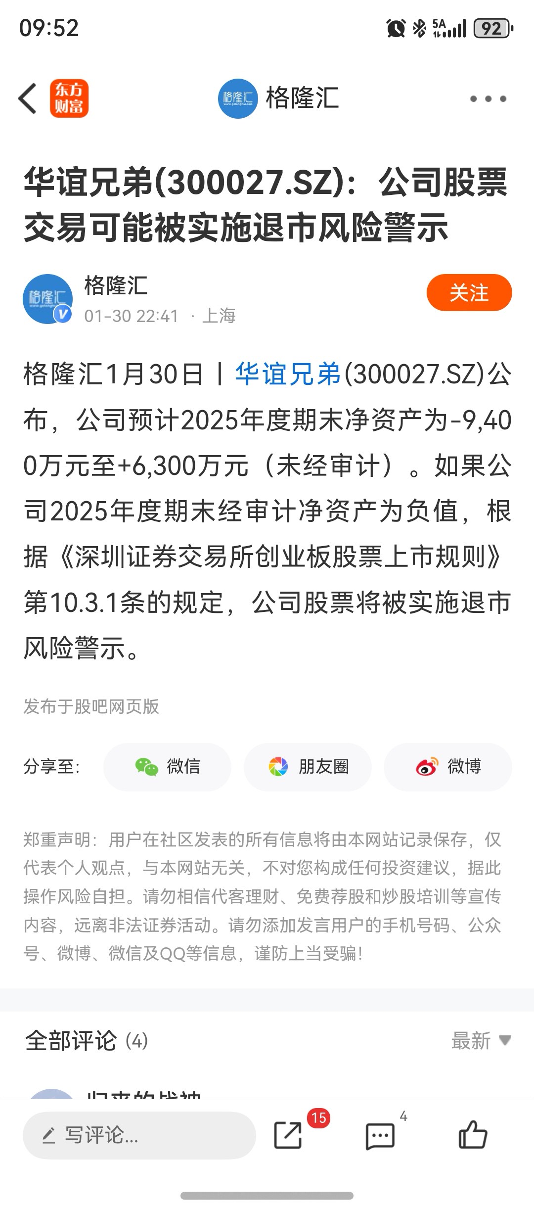 温馨提示: 1.根据《证券法》规定,禁止编造、传播虚假信息或者误导性信息,扰乱证券市场;2.用户在本社区发表的所有资料、言论等仅代表个人观点,与本网站立场无关,不对您构成任何投资建议。用户应基于自己的独立判断,自行决定证券投资并承担相应风险。《东方财富社区管理规定》