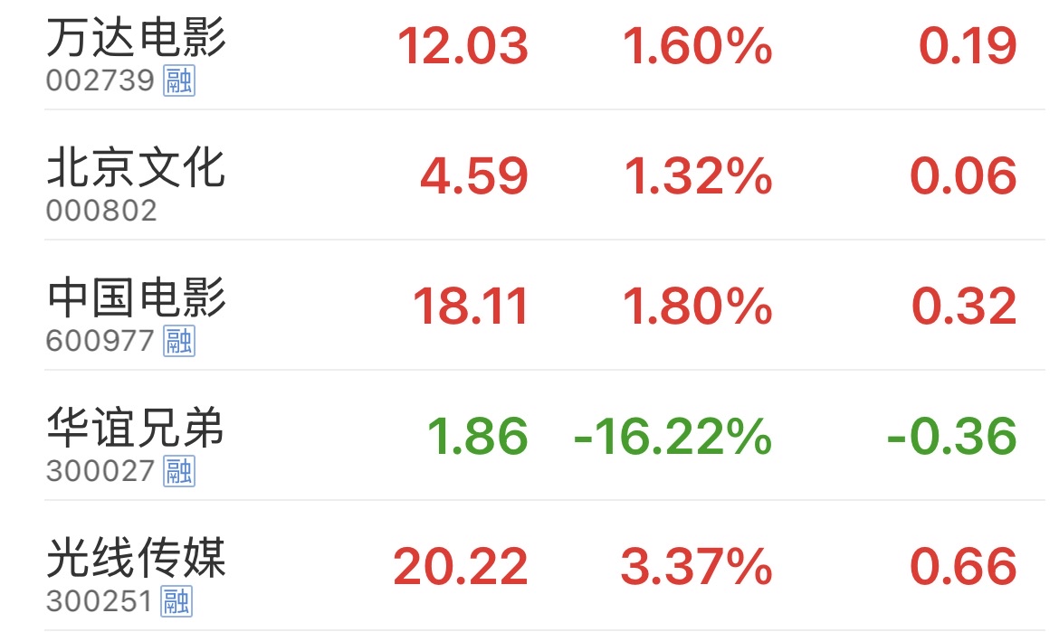 $华谊兄弟(SZ300027)$ 电影板块