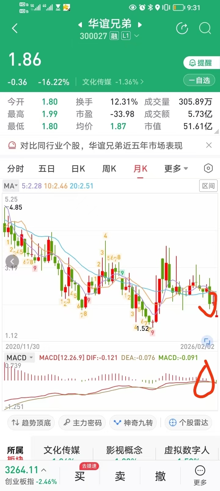 上周,周线击穿0轴线的时候,我就说要变盘,大跌,跳水缺口,你们还骂我,好心没好报,这票周线还有大跌,有可能会破1元大关,学长药,极限打压到4毛 让后拉回1元保面值退市,这是最狠的一种洗牌手法,因为华谊兄弟庄家是个穷庄 想极低的价格拿筹码进行极限打压股价到几毛,然后很多人会恐怖卖出 达到穷庄几毛钱收集筹码,毕竟庄穷 靠拉升拿筹码需要多花几个亿,不如极限打压股价破一元后在收集筹码,这坏的很