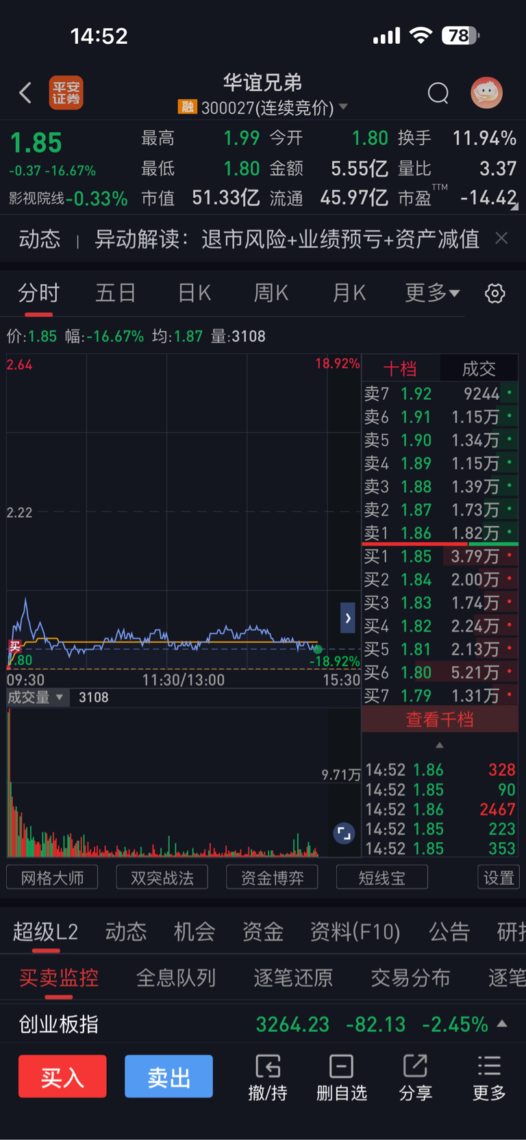 $华谊兄弟(SZ300027)$ 赚不到钱的憨批们,你们好,被打脸无数次的脸皮,不知道有多厚。憨批些,来看看,大暴跌,你们这些哈批,永远都赚不到钱,你不信没用