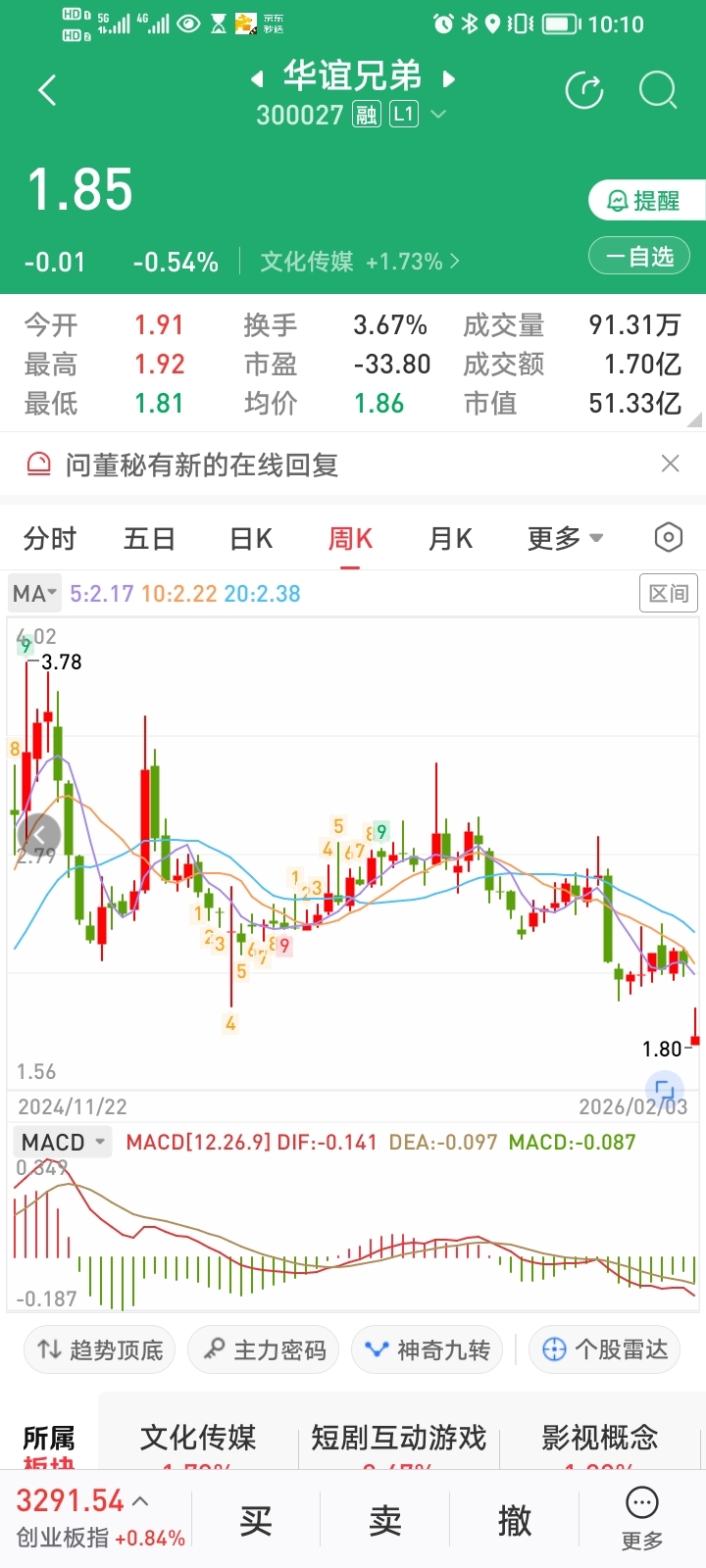 外面一片大涨行情 这票压根不愿意涨,意愿这么明显,不愿意做多,就是还想跌,奉劝各位,赶紧换股还来得及 在不换股,牛市给你无缘了,这票只会跟跌大跌,就是不跟涨,技术分析,周线还得跌10--15个点才能反弹 月线看,今年一年没指望了