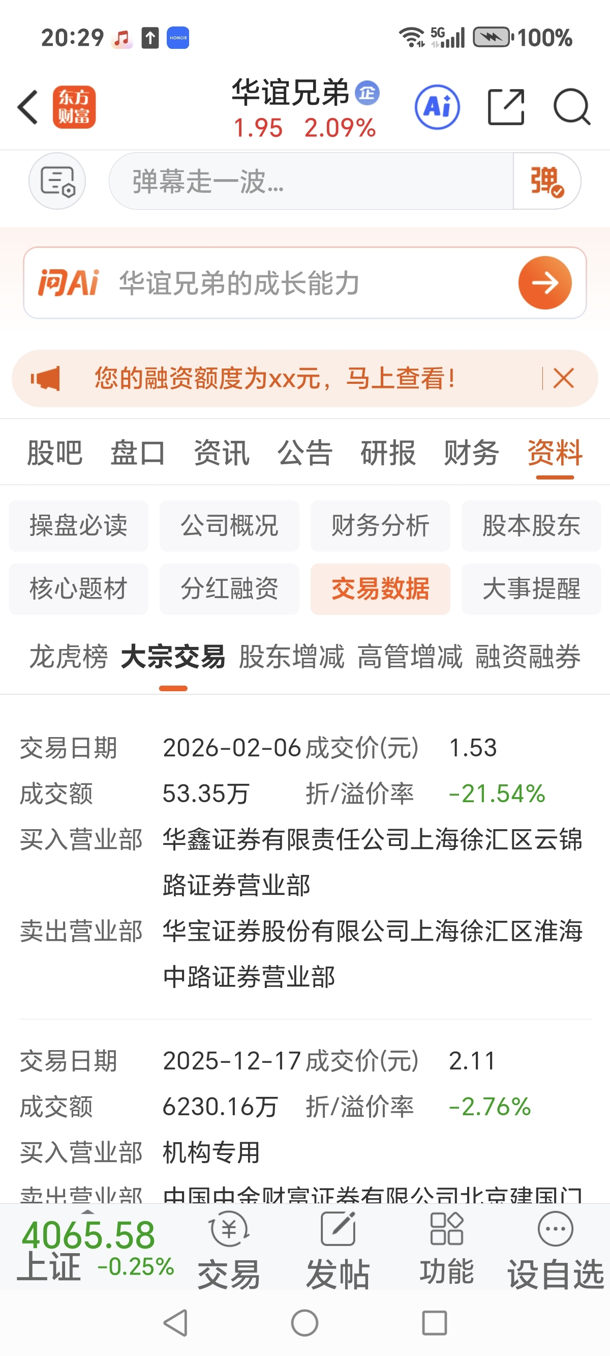 $华谊兄弟(SZ300027)$ 下星期有点危险。,大宗交易1,53元。