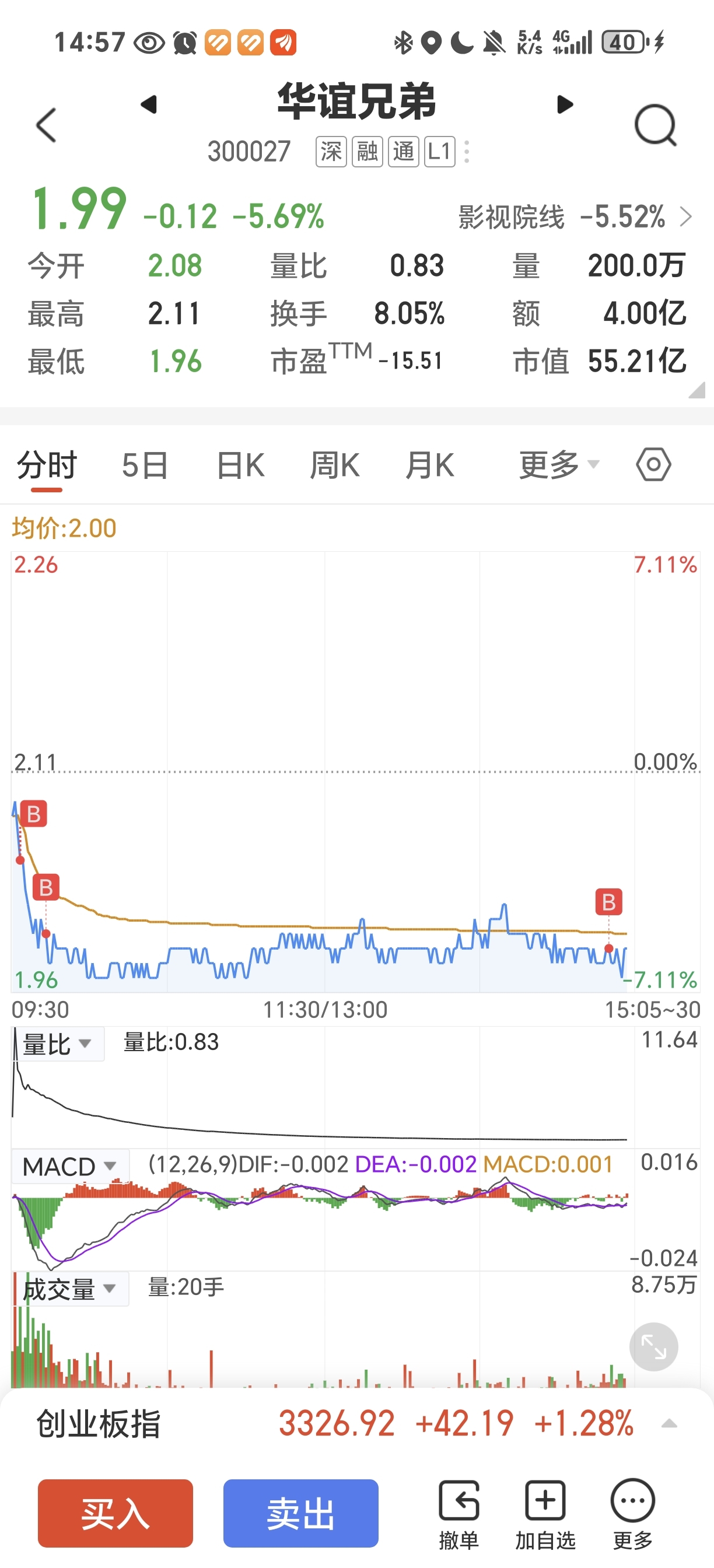 $华谊兄弟(SZ300027)$ 前天高点卖出今天分三次有买入10万股