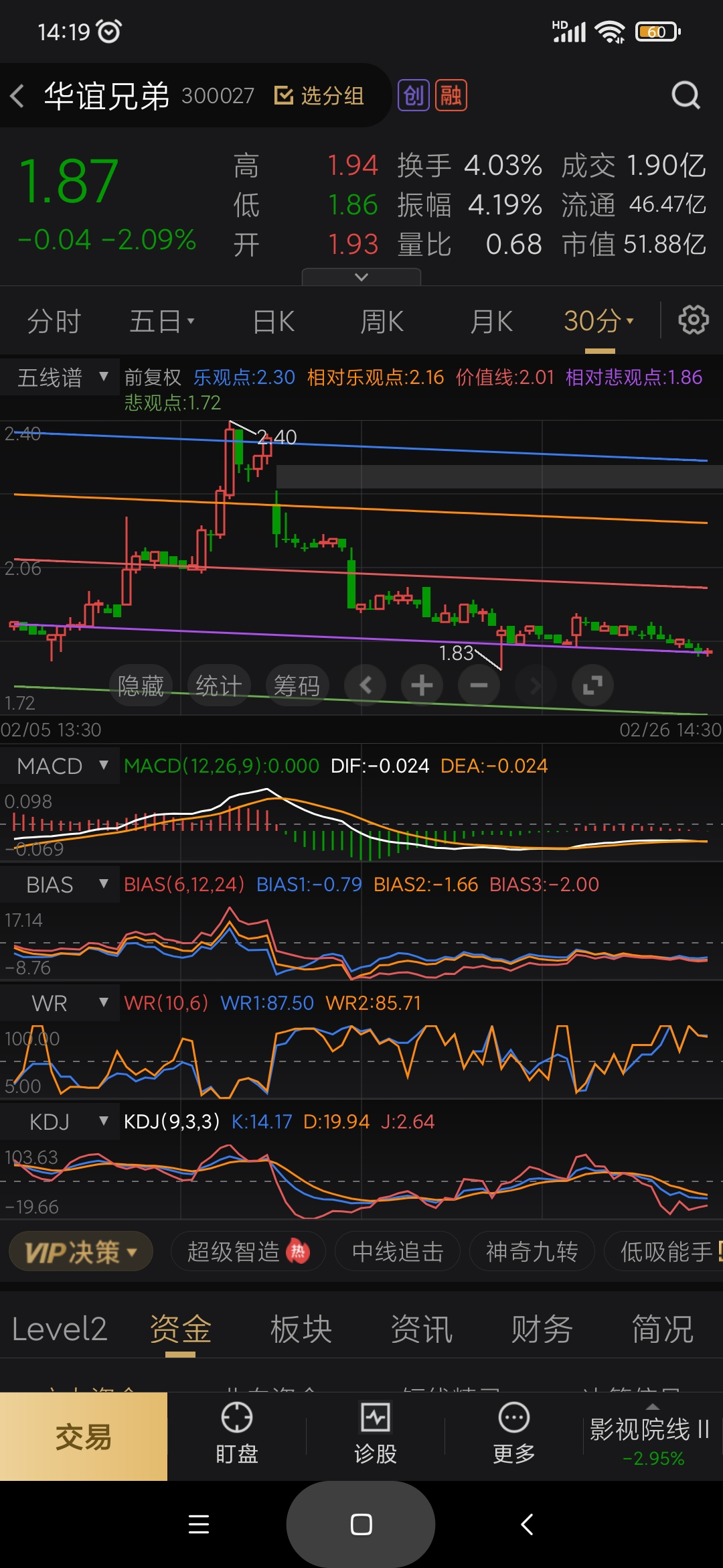 $华谊兄弟(SZ300027)$ 本次波段操作:1.86-2.16见下图