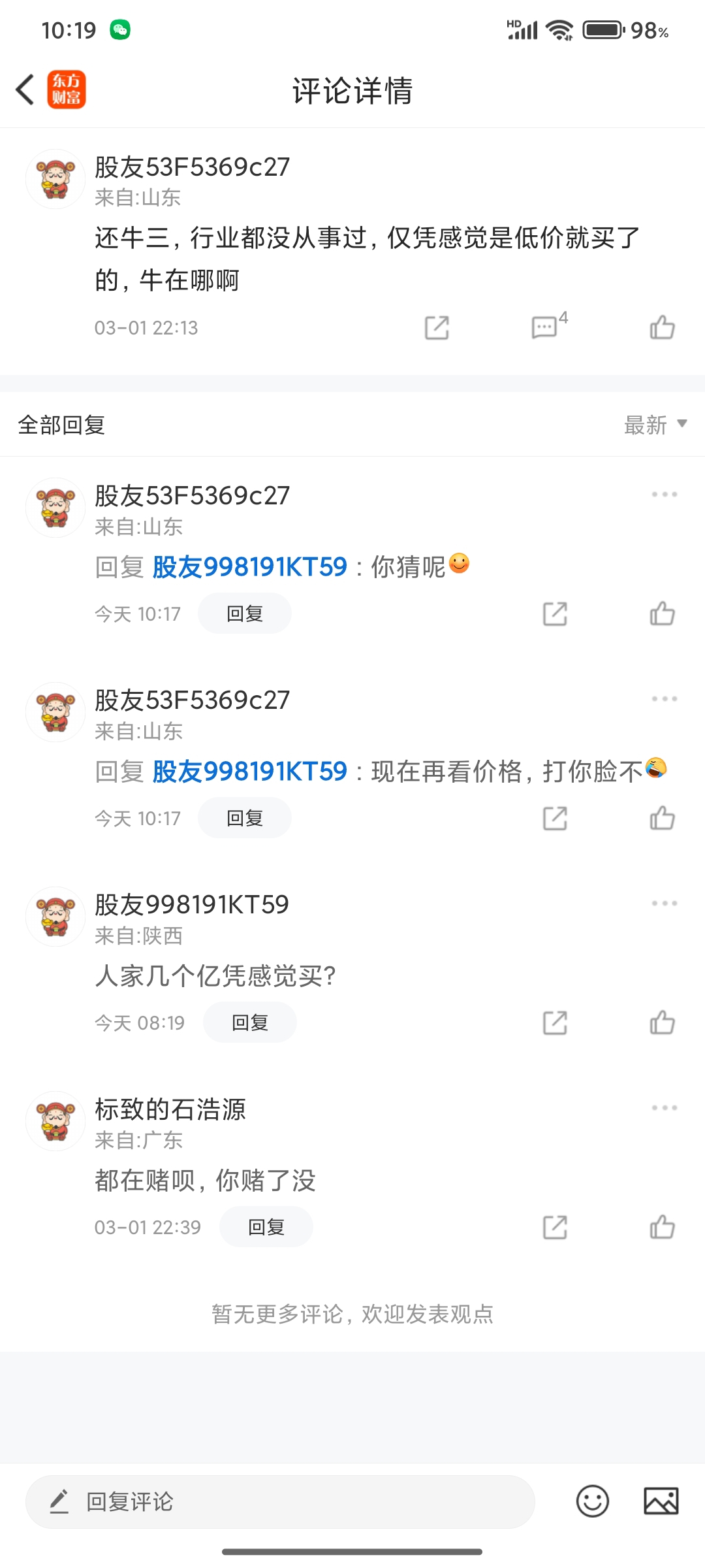 温馨提示: 1.根据《证券法》规定,禁止编造、传播虚假信息或者误导性信息,扰乱证券市场;2.用户在本社区发表的所有资料、言论等仅代表个人观点,与本网站立场无关,不对您构成任何投资建议。用户应基于自己的独立判断,自行决定证券投资并承担相应风险。《东方财富社区管理规定》